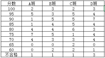 四个班级最终做完以后,做了个统计,其中A班相对成绩差些,是第一个班级考的,要求没说太具体。后面的班级告诉他们一定要看清题目意思以及图片上的信息。看下来四个班级整体水平差不多,这20个题目选择的难易程度还算可以的,达到了预期效果。